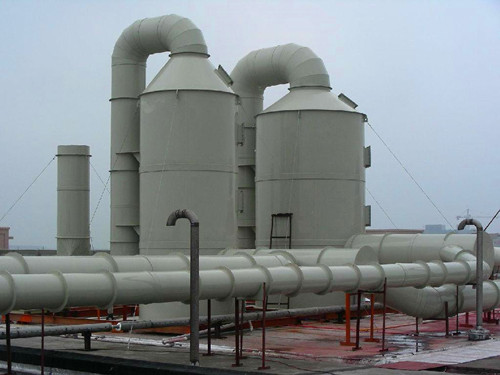 通過洗滌的方式除去氣體中的雜質(zhì),然后通過風(fēng)機(jī)將達(dá)標(biāo)的氣體排出是廢氣處理的基本流程。本公司生產(chǎn)的玻璃鋼洗滌塔與風(fēng)機(jī)均具備非常優(yōu)秀的防腐蝕性能,在工業(yè)生產(chǎn)中使用較多。下面展示一些玻璃鋼洗滌塔的安裝示例圖。