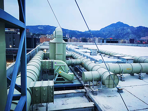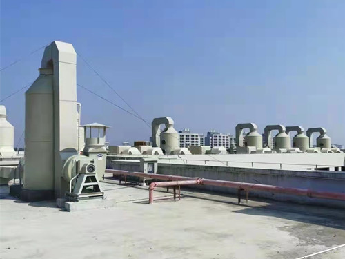 在廢氣處理工程中,玻璃鋼離心風機的型號、管道的分布、凈化設備的設置都對廢氣的處理有很大的影響。一般在整套廢氣系統(tǒng)安裝完成之后,需要先進行試用,檢查氣體的凈化效果。如果出現(xiàn)與預期效果不相符的情況就需要對各個設備進行單獨測試,下圖是浙江溫州電鍍園區(qū)玻璃鋼離心風機使用現(xiàn)場圖。