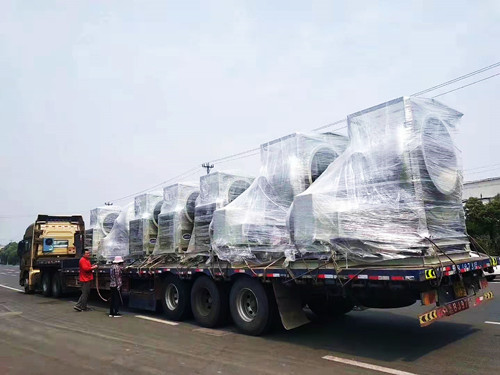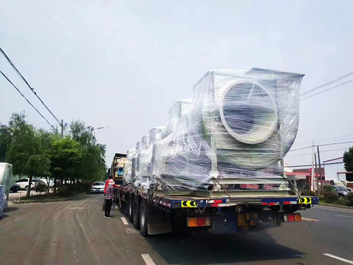 上個月山東某客戶在我司訂購的一批6臺14C75KW的玻璃鋼離心風(fēng)機(jī)今天發(fā)貨,之所以交貨期多達(dá)一個月,主要是因為這一批風(fēng)機(jī)使用的電動機(jī)為變頻防爆專用電機(jī),電機(jī)需要進(jìn)行定制。在發(fā)貨前使用透明塑料模對風(fēng)機(jī)進(jìn)行了整體的包裹。